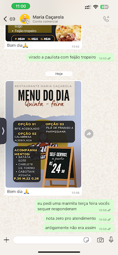 Então reintero minha observação, se não conseguem anotar o pedido por whatsapp, NÃO DÊEM ESSA OPÇÃO PARA O CLIENTE. Tornem obrigado o serviço de link ou melhorem o serviço e atenção. Peço assim, por ser mais fácil e pelo estabelecimento dar essa opção!! E como trabalho em hospital, não tenho tempo de ficar no celular.