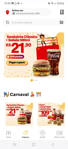 Antes de decidir onde comer, consultei o site do McDonald's e vi a propaganda da promoção de Carnaval, onde estava claramente indicado "McDonald's da Estrada da Boiada, Vinhedo". Com base nessa informação oficial da empresa, escolhemos essa unidade para aproveitar a promoção.