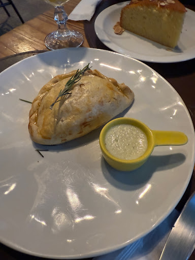 Empanada de Frango: Veio quentinha, acompanhada de um creme branco tipo cream cheese. O frango estava muito bem temperado e a massa no ponto: macia, mas firme o suficiente para não desmontar na primeira mordida.