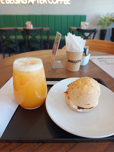 Uma graça de café. Atendimento simpático. Provei o pão de queijo recheado de cream cheese e bacon, mas não achei que ornou muito, não. O cream cheese era bem azedo (de sabor, não que estivesse passado), e o bacon, um pouco duro para morder no meio do pão de queijo. Numa próxima, eu pediria um pão de queijo normal, ou o queijo quente no pão artesanal, que tinha uma cara ótima. O suco de polpa de tangerina não achei ótimo, pediria outro sabor numa próxima ocasião. O brownie de chocolate cortesia era bom, principalmente para quem prefere doce de chocolate meio amargo. Como prefiro coisas mais doces, não foi meu preferido. Pediria outro doce.