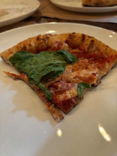 Crítica à pizza: "Infelizmente, as pizzas, não acompanha a qualidade do restante do serviço. A massa era um pouco leve e o sabor dos ingredientes parecia não ornar com a massa da Pizza. Dito isso, adorei o acompanhamento de vinho, e a forma como a Pizza é servida."
