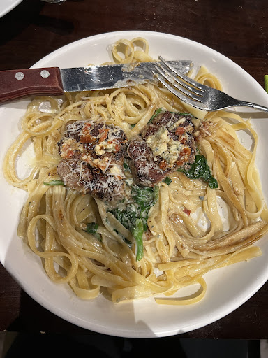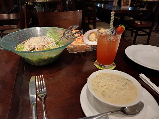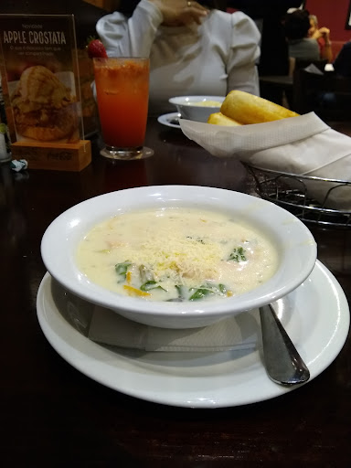 Primeira vez no badalado restaurante Italiano do Shopping Parque Dom Pedro. Fomos na sexta feira pós feriado de dia das crianças. Estava quase cheio o restaurante mas ao chegar vi que tinha a cara de "Outback" no quesito atendimento. A mesa foi indicada prontamente e o garçom já veio tirar pedido de bebidas. Tem refil por preço fixo. Pedimos os pratos principais e o garçom nos perguntou se gostaríamos de salada ou sopa. Pedimos salada, não sabíamos que fazia parte do serviço e é a vontade, você pode repetir quantas vezes quiser. Veio junto um pãozinho tipo "Subway" baguetinha bem fofinha e quentinha. Por fora é temperado com sal de alho. Muito gostoso. Chegaram então os principais. E ai o que estava bem legal na entrada, caiu de nível no principal. Minha esposa pediu um polpetoni recheado com mussarela com espaguette ao molho de tomate. Não era bom! Espaguette "Barilla " pré cozido e não finalizado no molho. Ou seja massa sem gosto e molho por cima da massa. O molho sem sabor, gosto ácido, faltou sal. Uma comida de hospital é mais saborosa. Pela simplicidade do prato, deveria ser melhor executado. Eu pedi um Srimp chicken carbonara. Pela descrição do prato parece ser bem interessante. Mas a execução foi um desastre. Massa pré cozida também. Molho sem sal, bem sonso. O frango que é Sassami, estava bem temperado pois deva ser marinado antecipadamente. Não foi um bom prato de massa. O valor é "Ok" pelo ambiente, serviço e por ser restaurante de Shopping o que inflaciona um pouco mas a comida decepciona. Se eu disser o que faria eu voltar seria a salada o pão e a sopa que estavam bem gostosas. No fim considero uma...