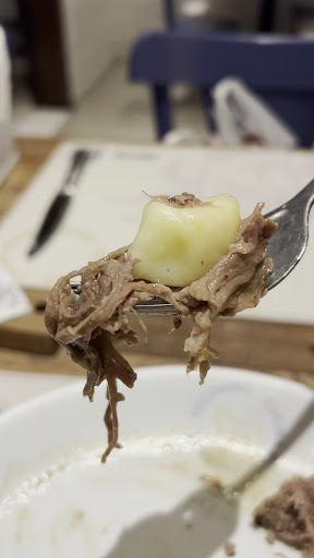 Pratos principais perfeitos. Pedi o cordeiro assado por 5h com nhoque na manteiga e sálvia (R$79,00). Divino. A carne desmanchava, absurdamente saborosa, textura que combinava em cheio com o nhoque e a sálvia trazendo uma leve amargura. Pqp que prato. Ele era feio, mas dos pratos feios que já comi, esse foi o melhor.
