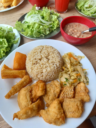 Read moreGanhamos 1 voucher pela rádio cidade valendo um almoço para duas pessoas (o prato era o peixe traira), nesse voucher dizia que não estava incluso a bebida nem os 10%, estávamos cientes. Chegamos lá e pedimos uma porção pois a garçonete disse que demoraria 50 minutos para preparar o peixe e ela disse que a porção seria mais rápido, demorou uma meia hora e trouxeram tudo junto, comida mais ou menos, feijão com gosto de peixe, meu suco foi chegar depois que eu já havia terminado de comer depois de pedir várias vezes, o chopp também demora demais para chegar, toda hora tinha que lembrar os garçons, peguei uma sobremesa e me arrependi pois estava com muito gosto de ovo. Na hora de pagar eles cobraram o 10% duas vezes, disseram que tínhamos que pagar os 10% do peixe que ganhamos + os 10% do que consumimos, nunca vi isso na minha vida, achei um absurdo, a mulher do caixa ainda achou ruim, disse que no cartão dizia que era cobrado, mas acredito que o certo seria ter cobrado em cima do valor que nós consumimos no valor final, e não 10% em cima de um prato e + 10% do resto! Odiei a experiência, esperava muito de um lugar que não entrega nada, era melhor não ter ganhado o voucher e pagar para comer em um lugar melhor e com um atendimento melhor! E outra, esse negócio de 10% nunca foi obrigatório, e ainda pagamos duas vezes, antes de ir lá é melhor estudar seus direitos pra não cair na mão de gente que...
