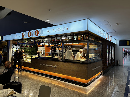 As fatias de pizza e pedaços de focaccia possuem preço único de R$ 20,00 (qualquer sabor), preço razoável comparado as opções de alimentação do aeroporto. Comi a focaccia Caprese, estava ok, nem ruim e nem deliciosa, mas para “enganar a fome” valeu. O ponto positivo é que normalmente não está cheio, basta escolher o sabor e aguardar aquecer o prato, por isso é rápido, para quem está em conexão vale a pena. Vale ressaltar que os preços das bebidas são altos, chegando a R$ 12,00 o refrigerante.