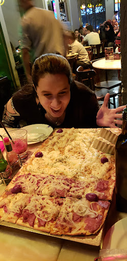 Read moreVamos começar.. olha, não que a pizza seja ruim (não é, 8/10) o problema são vários.. a garçonete parecia que tinha toque de limpeza, não podia ver um papel, plástico que ela já ia tirar (e não se importava se o papel estava no meio da mesa, ela colocava a mão em cima do seu prato só pra tirar o papel), outra coisa o lugar era excessivamente barulhento, havia cantor e cobrou Couvert de 7,70 por pessoa (já que foi com 10%); as mesas por ser de mármore (o que eu acredito que seja, eram muito pequenas, a ponto de bater a perna na pessoa do lado, e pareciam mesas de bar) as mesas são muito coladas e não bastasse isso, os garçons ficam logo do lado da sua mesa conversando, enquanto você come. Sinceramente o que parece um lugar requintado por fora, decepciona imensamente quando você entra....