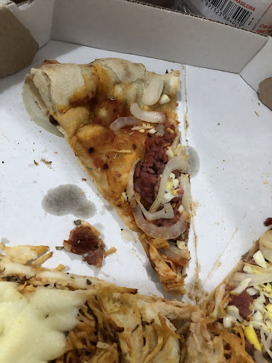 Solicitei borda de ovomaltine e, infelizmente, ela chegou derretida, cobrindo parte da pizza salgada, o que comprometeu o sabor. No entanto, a massa tem uma espessura adequada e é bem assada, o que é um ponto positivo.