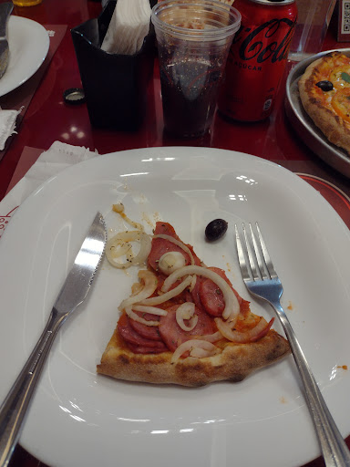 Read moreO rodízio é gostoso, as pizzas chegam rápido, mas o atendimento deixa MUITO a desejar. Chegamos no local e saímos do mesmo jeito: sem saber se o pedido é feito no balcão, na mesa, se tem alguém pra atender.. Em vários momentos a nossa mesa estava cheia de coisa e ninguém veio limpar. Também ficamos esperando um tempão só pra conseguir pedir um refrigerante. Além dessas questões com a gente, também ficamos extremamente incomodados por uma família que esperou por 30 minutos e foi embora por não ter sido atendida. O colaborador literalmente foi até a mesa deles, disse que já voltava, se enfiou na cozinha e nunca mais apareceu. Acho que falta uma gerência no local pra acompanhar essas questões, porque a pessoa que deveria estar atendendo prefere perder um cliente, ficar o tempo todo dentro da cozinha conversando, a fazer o seu trabalho. Embora tenhamos gostado da pizza em si, não...