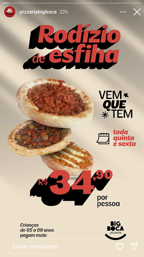 Read moreBig Boca, simplesmente sensacional o atendimento desse pessoal e a pizza tbm não fica para trás. Por engano pedi uma pizza na unidade de Mogi Guaçu, porém moro em Campinas, depois de uma hora que vimos o erro, e o Gerente Thiago da unidade, correu atrás, ligou na unidade aqui de Campinas, passou meu pedido, endereço, telefone e em menos de 30min, minhas pizzas estavam em casa quentinha e deliciosa. Um dia após o incidente recebi uma ligação do gerente Thiago, super preocupado querendo saber se tinha dado tudo certo, e claro rasguei elogios a eles, as duas unidades estão de parabéns tanto pelas pizzas quanto pelo atendimento. Agradeço a preocupação que tiveram comigo das duas unidades... Se alguém me perguntar sobre uma pizzaria, com certeza vcs estão em primeiro lugar ... E se um dia eu for para Mogi Guaçu, farei questão de ir até o Big Boca de lá... Parabéns galera, atendimento faz muita...
