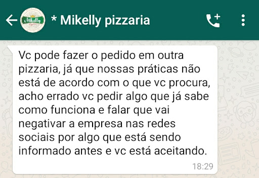 Péssimo estabelecimento! Cobram diferente do codigo de direito do consumidor em pizza 1/2 a 1/2, cobrando o valor da pizza mais cara. Pior, no site e no aplicativo, quando escolhida a opção de meio a meio, mostra-se ao lado de cada sabor metade do valor da pizza inteira, mas ao incluir os dois sabores, nao acontece a soma dos valores correspondentes, e sim a pizza fica com o preço da mais cara. Ao serem questionados sobre e ao pedirmos 2 pizzas e solicitarmos a nota fiscal com esta descrição foram extremamente ignorantes cancelando nosso pedido mesmo falando que queriamos as pizzas e mandando que procurassemos outro estabelecimento, demostrando todo péssimo tratamento e cuidado com...