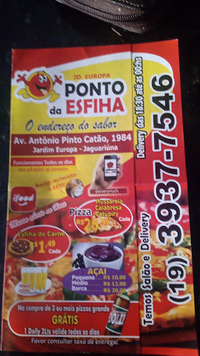 Read moreMaravilhosoo esse lugar!! toda vez q temos oportunidades de sair sempre vamos ao Ponto da Esfiha - Jardim Europa!! pizzas, esfihas, beirutes, otimos! Mas teve uma vez que a gente pediu uma jarra de suco e so veio espuma ( quase nao veio suco ) mas de resto maravilhoso!! não considero isso muito pq fomos mais de 10 vezes nesse lugar e so aconteceu isso de " ruim "...