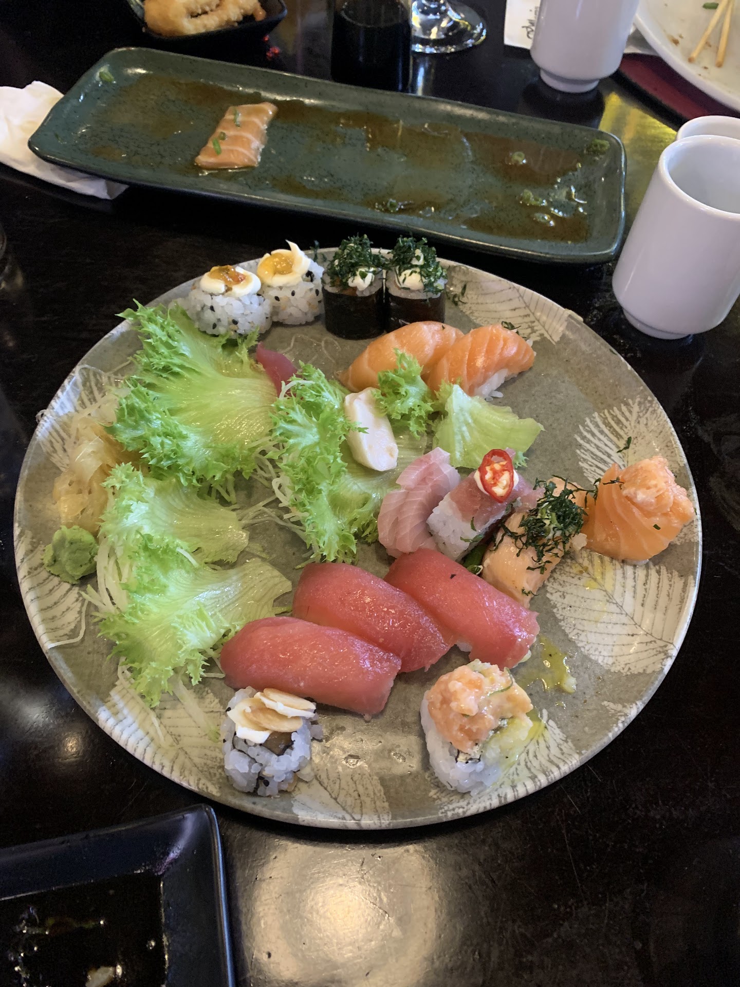 A comida é muito boa! Claro, eu senti algumas coisas um pouco abaixo do padrão, como o atum que não achei fresco, não gostei, e o camarão empanado, muito oleoso e com resto de casca. Mas, no geral, tudo estava bem gostoso: os especiais da casa, bolinho da maria, o combinado como um todo, salmão e prego bem bons, temaki com opção sem arroz delicioso, lula boa e eles têm até picanha que estava absurdamente gostosa! Achei bem ok só o shimeji e o temaki skin, os dois médios. De sobremesa, comi o sorvete com banana caramelizada, bem bom também.