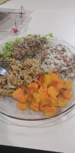 Agradecei o RS nosso de cada dia. Não vá entre às 12h e 13h se puder, é o horário que tem mais fila. Ou entre às 18h e 18h30. O arroz, feijão e a pimenta são maravilhosos. Normalmente os pratos veganos parecem uma sopa (o que é beeem triste). As tortas (kibe de abóbora, torta de aveia, cuscuz) e a feijoada vegana são muuito gostosas. A farofa que tem as vezes também. O dia que tem doce de leite é muito feliz. Tem prato de vidro. Não tem café da manhã :( Sempre tem muitxs crush 🖤 Leve caneca e trate bem o pessoal que...