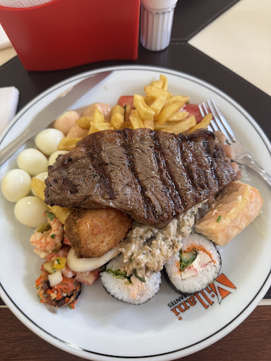 Read moreGrande variedade de alimentos, além dos comuns tem uns mais exóticos como sushi, salmão, frutos do mar, champignon, palmito… Carne bem macia também. Fui em um sábado, só tinha buffet a kg, sem opção de livre, o valor não lembro exatamente mas era 90 e alguma coisa. Esse prato da foto deu uns R$73 mais ou menos. Pela variedade do cardápio é um preço até que justo. Sobremesa valor a parte depende do que é. Atendimento muito bom, garçonetes e caixas muito educados(as). Ambiente achei bem comum, nada de mais. Não sei qual o preço nos dias de semana, mas aos finais de semana, se tu quer comer algo diferente até que vale a pena. Aceitam Alelo...