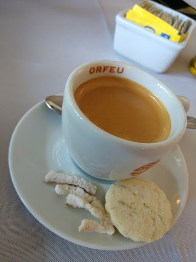 Serve um bom café expresso cobrado a parte. Acompanha lascas de laranja caramelizada e bolacha.