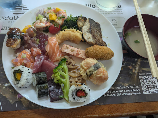 Read moreComida japonesa de verdade, falo com propriedade, pois minha esposa é oriental e amou a comida, a fez lembrar de sua querida batchan❤️. Ótima comida e diversas variedades de pratos frios e quentes, e o serviço é self-service. Atende a todos os gostos, seja para quem gosta do sushi tradicional ou os pratos mais típicos como takenoko, gobô, sekihan, harusame dentre outros. Não posso deixar de destacar como cortesia da casa a entrada de mishoshiro e banchá de saída. Ótimo atendimento. O espaço não é tão grande, então em horário de pico no almoço ou jantar costuma encher o salão. Ir duas vezes em menos de um mês quer dizer que eu...