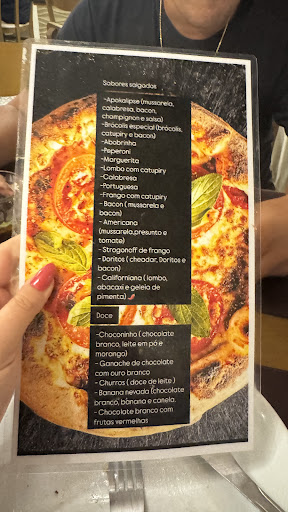 Fomos à pizzaria pra comer rodízio conforme anúncio do Instagram. Ao chegar na pizzaria foi apresentado um cardápio completo com todos os sabores, dessa forma pensamos que eram todas as pizzas do cardápio, em nenhum momento foi apresentado um cardápio a parte informando que o rodízio tinha alguns dos sabores que constavam no cardápio normal. Até aí, tudo certo, começou a passar alguns pedaços. Depois de um tempo apareceu uma garçonete com um cardápio diferente do normal que continha poucos sabores das pizzas apresentadas anteriormente, perguntando se queríamos algum sabor que ainda não tivesse passado. Nossa tristeza começou aí… A pizza de strogonoff de frango: gelada e o frango é desfiado (?) tá mais pra um fricassê do que pra um strogonoff. A de lombo com catupiry: o lombo é inconsistente, os pedaços não estavam uniformes, veio pedaço grande, pequeno (tipo porção), fatias, DEVERIAM PADRONIZAR o corte do lombo. A de marguerita e frango com bacon estavam gostosas Depois de um tempo veio um rapaz muito simpático e disse que faria uma pizza brotinho com os sabores que nós quiséssemos, escolhemos os sabores (alguns não tinham no cardápio do rodízio) e ele fez mesmo assim. Aí a história começou a melhorar, os sabores que escolhemos foi quatro queijos, frango com catupiry e mussarela que estavam muito gostosas. As pizzas doces do rodízio estavam ótimas. A de ovomaltine, ninho com morangos estavam gostosas mas a de chocolate branco com frutas vermelhas é A MAIORAL, muito, muito gostosa, a melhor que a gente comeu. No cardápio normal o chocolate é lindt, no rodízio não. A de chocolate com ouro branco - no rodízio é chocolate, no cardápio é nutella - é um pouco enjoativa. Os ingredientes são de altíssima qualidade porém a forma como é servida, não é boa. E deveria ter uma melhor transparência em relação ao rodízio, que as pizzas são...