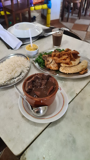 Read moreSabadão, bateu aquela vontade de amassar uma feijoada? Pode ir no Bar do Hélio sem medo que vai sair feliz, vai curtir uma roda de samba comendo uma feijuca SABOROSISSIMA! Pedimos uma feijoada para Duas pessoas (R$70) que acompanha arroz branco duas bananas empanadas em farinha panco que estavam deliciosas, couve refogada topen, duas bistecas que estavam meio duras, e muito torresmo que poderiam estar mais crocantes... Se a gente não fosse tão guloso, teria sobrado um monte de comida, porém cada um bateu duas pratadas e nesse dia "nem o cachorro comeu". O chopp estava gelado e bem gostoso e o suco de abacaxi veio bem melado (acho melhor pedir sem açúcar e adoçar a gosto) Fechamos com caipirinha de limão que estava na medida, muito gostosa! No geral foi uma ótima experiência, até pra quem não curte samba como eu, vale super a pena! Eles cobram R$4 de couvert por pessoa que achamos super honesto, pra banda que é muito boa; fizemos um pedido de música e mandaram muito bem! Ah! Pra quem tem filhos, tem um play ground pros pequenos...