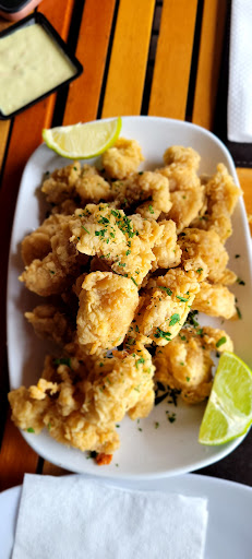 The atmosphere is the best feature of this restaurant. We ordered calamari and fried fish for appetizers. They were average. Not bad, but not great, either. The main courses were better. Being situated right beside the river was really nice. It's not enclosed, so if it's cold out, make sure you bring a sweater. There were always more than enough servers. I ordered the chicken with vegetable, and they brought chicken with rice. When we questioned them about it, they basically did nothing. Hence, there are only 2 stars for service. Be prepared for a walk, there is very limited spots...