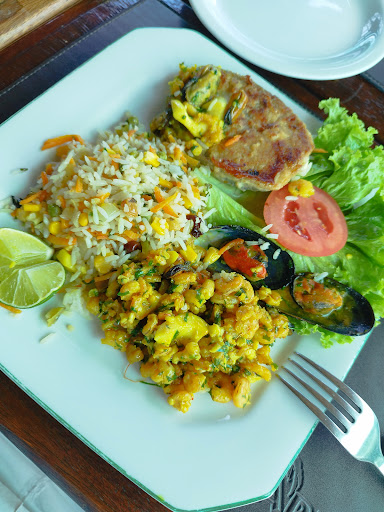 Porém, a culpa é da gestão, do dono, de quem escolhe o produto para ser servido. Pedimos um risoto de camarão, com outros frutos do mar. Pasmem, o arroz usado foi o agulhinha, não foi o arroz para risoto, é um tremendo absurdo ser "enganado" desse jeito. Jamais levantaria p ir embora, mas foi nítida a frustração.