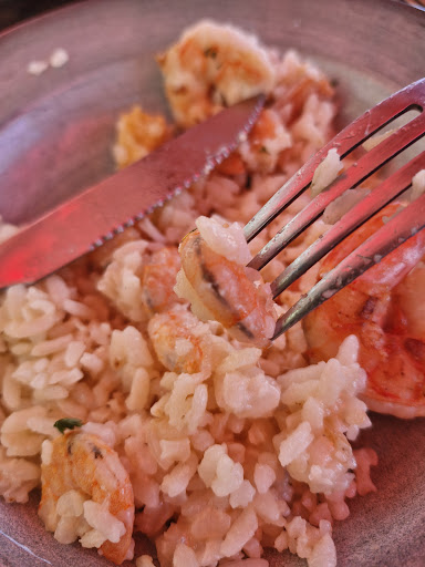 2 risotos de camarão que... francamente, eu não sei porque eram daquele jeito. 🤔 não tinha consistência de risoto, quase parecia um arroz normal. o gosto era superficial e os camarões pequenos estavam todos com os intestinos cheinhos de fezes, e bem aparentes. por o prato ser 107,98 reais, o mínimo é que esses frutos do mar estivessem limpos e que o gosto fosse bom! nenhum dos dois.