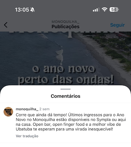 Read moreNão recomendo Réveillon ou outras datas comemorativas nesse local. Réveillon na Praia Grande não seria tão decepcionante quanto foi esse. Pagamos caro no convite, em torno de 550$, para a virada de 2024 / 2025 e foi o pior de todos. Prometeram comidas e drinks variados, mas eram poucas as opções e bem desorganizado. Uma mesa pequena com alguns queijos, castanhas, patês.. sem descrição. No cardápio haviam opções de FRUTAS, mas só tinha ameixa. OBS: perguntamos antes se teria uva e confirmaram, então se eu não encontrar meu amor em 2025, o grande culpado é Monoquilha. Cardápio de bebidas miserável , com poucas opções e prometeram caipirinha de limão e maracujá, mas olhe só, NÃO TINHA MARACUJÁ. Não se preocuparam também em correr atrás de outras frutas. Batata frita? Acabei de ficar sabendo que tinha por conta da avaliação da colega acima. Música pessima, dj desanimado, músicas repetitivas e xoxas, minha avó teria amado. E pra finalizar 3h10 anunciaram que não serviriam mais bebidas, mas no convite iriam finalizar às 04h. DETALHE, reclamei e fui chamada de CHORONA pelo...