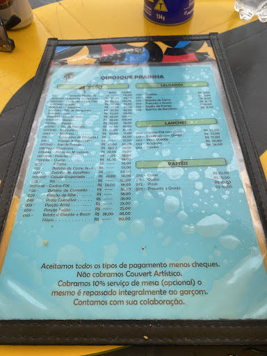Read moreGostei em parte. Serviço do atendente, prestativo e educado. Produtos: deixam a desejar um espetinho de frango pequeno e seco, tempero nenhum,$ 15,00, passou um ambulante, espeto muito mais encorpado bem temperado $8,00 deu de dez no quiosque, além de vender espeto de carne, linguiça e queijo. O mesmo se aplica no bolinho de bacalhau, pequeno pouco sabor. Tempo de espera pelo pedido uma eternidade, se não reclamasse, sairia no ano que vem. Uma caipirinha? Precisa saber fazer, horrível, devolvemos e pedimos para melhorar, se colocaram a pinga solicitada, tenho minhas dúvidas, o sabor não condizia . Uma pena. Foto...
