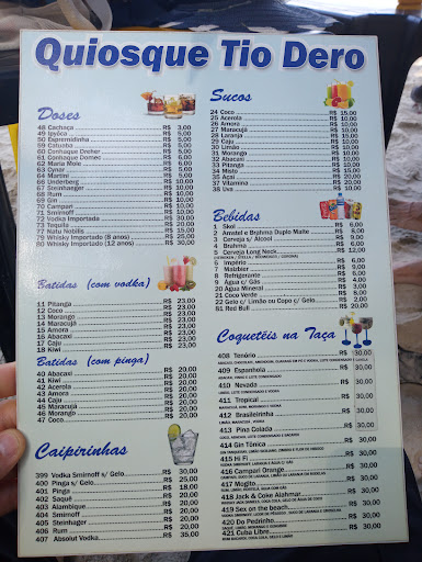 Read moreEu e minha família frequentamos há anos o Quiosque Tio Dero e o qiw nos fãz voltar sempre é atenção, o cuidado de toda a equipe, aqui destaco : Gerardo, Filipe, Matheus, Osmar que sempre nos atende diretamente desde o estacionar até trazer a nós os melhores pesticos , sempre do início ao fim com mesmo carinho. Sei que é existe uma equipe que não conhecemos que estão preparando o melhor pra nós:petiscos, sucos. Parabéns Wagner e Tatiana pela equipe extraordinária que vocês lideram. Emerson, Lilian, João Pedro,.Sofia e...