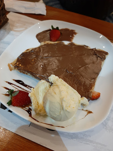Read moreAmei o crepe salgado, fomos a noite. Pedi um crepe de carne com queijo e ovo, meu esposo pediu um de peito de peru. Eles são bem grandes e gostosos, vem acompanhado de uma saladinha de cenoura ralada e alface americana, delicinha. Para nosso apetite no dia, um daria para os dois, é bem servida. Cada um pediu. Drink, de morango, eu de saquê e ele de vodka, ambos estavam na medida. Pedimos um crepe doce para experimentar, Nutella com paçoca, é bem servida também. Para nosso paladar, poderia estar um pouco mais tostada a massa ;) Uma refeição, leve e gostosa. Não tem estacionamento, mas pode parar na rua, caso...