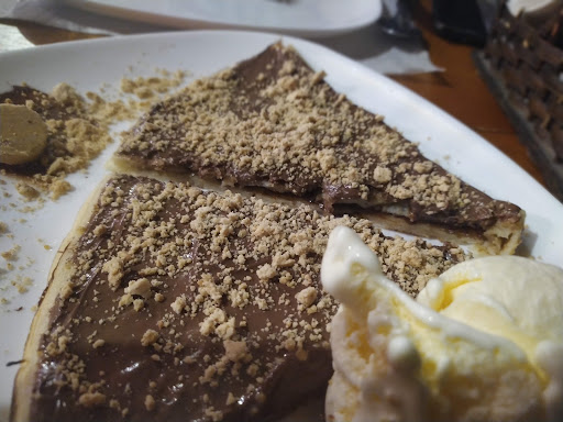 Fui com a minha irmã no dia 26/12/2021, pedimos um crepe cada um, cada crepe custa cerca de quarenta reais ou mais, e eu achei que não é o suficiente para satisfazer uma pessoa, só não pedimos mais porque achamos muito caro. Eu achei o crepe que pedi bem saboroso até, o problema mesmo foi o preço e o tamanho, minha irmã não gostou muito do dela, achou muito seco, e de modo geral ficou bem brava, por isso estou dando sói duas estrelas. Talvez a localização chegue perto de justificar o valor exorbitante, mas realmente achei tudo muito simples pelo valor. Outra coisa um pouco intrigante é que a palavra "pizza" fazia parte do nome do estabelecimento mas simplesmente foi apagada do logo com um canetão preto ou...