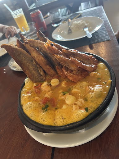 Read moreConheci esse restaurante próximo da praia da Cocanha por meio de pesquisa que sempre faço antes de viajar e tinha visto ótimos comentários. E realmente o restaurante é ótimo! O ambiente é bem agradável, com ventiladores potentes, tem o salão principal com várias mesas e tem algumas mesas que ficam do lado de fora, mas ainda numa parte coberta (com divisões na construção como se fossem janelas só que sem vidro) que é bem arejada, além de algumas mesas “pé na areia” (pelo que eu entendi pertence ao restaurante), ou seja tem bastante espaço.Inclusive no domingo, quando fui almoçar com meu marido, tinha um grupo bem grande na parte interna do salão com umas 10 pessoas. Quanto a comida, tivemos que pedir uma porção de peixe empanado e uma guarnição para acompanhar (purê de batata foi a escolha) porque AS OPÇÕES DE ALMOÇO SÃO GIGANTESCAS sem exagero algum!! Perguntamos pro garçom, assim que entramos, qual era mais ou menos o tamanho desses pratos principais de refeição e todos eram muito grandes! Macarrão com frutos do mar, por exemplo, vem 1kg de macarrão! Mas pratos como risoto, postas de peixe com arroz e legumes todos para pelo menos três pessoas! Nós não teríamos como levar para viagem (nossa Pousada era em outra praia) por se tratar de peixe seria muito perecível no calor que estava. Mas o prato que escolhemos saciou bastante: veio uma quantidade generosa de peixe empanado bem sequinho e uma travessa grande de purê de batata. Lembro que o purê foi r$ 49, mas como eu acabei de dizer, uma travessa grandona! O banheiro estava limpo e o atendimento dos garçons foi muito bom. Sempre que nos chamávamos, vinham à nossa mesa e atendiam prontamente. Por fim, dizer que comer peixe e frutos do mar na Praia, pelo menos para mim e para o meu marido, é sempre uma questão delicada e precisa ser segura, justamente para não ter uma intoxicação alimentar e esse restaurante se encaixa 100%...