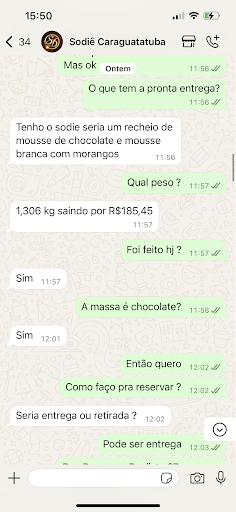 No dia 17.02.2025 comprei um bolo para a festa de aniversário da minha filha, a vendedora afirmou que o bolo havia sido preparado naquele mesmo dia, então comprei pelo WhatsApp e pedi para entregar.
