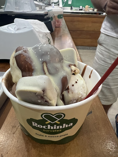 Você terá sabores mais tradicionais e alguns mais diferenciados. Pra quem gosta de testar sabores diferentes e, se você visitar a Rocha, eu recomendo o sorvete de chocolate com creme. Acrescente a ela bolas de outros sabores que te chamem a atenção e seja feliz.