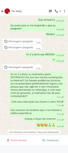 O primeiro contato com esta pousada já é extremamente decepcionante. Mandei uma mensagem para saber o valor da diária, visto que não há nenhum tipo de informação, nem mesmo no site, nem no Instagram. Ao ser direcionada para o ZAP, perguntei o valor da diária para o período de dois dias de 19/09 a 21/09, após uma hora veio a resposta extremamente seca e grossa, que só aceitam duas diárias. Acredito que a pessoa tenha problemas de cognição, pois eu queria cotar exatamente duas diárias. Perguntei com quem eu estava falando, e abençoada me respondeu que era a dona da pousada, NINA que estava falando comigo. Ao invés de se desculpar, se limitou a me dizer que estava com problemas na internet e que se eu quisesse, poderia me hospedar em outra pousada, pois eles não faziam questão. Ela continuou num tom discriminatório, dizendo que eu não tinha perfil para ficar hospedada na sua pousada. Futuros hóspedes, deixo aqui o meu breve relato!! Fujam deste local!!! Se a proprietária te trata desta maneira, na primeira mensagem enviada , o que se pode esperar??? Agradeço por não ter reservado!! Agora entendo a razão de tantas reclamações na internet. Agora o meu recado para a SRA. NINA: Se vc não tem paciência e nem capacidade para responder as mensagens que cheguem no whatsapp solicitando cotação, pague um funcionário. Com certeza, ele fará este papel com muito mais simpatia do que vc!! Deus me free de gente como vc!! Sahy é um lugar de gente feliz!! Não pessoas amargas como vc!! Opções de hospedagem não faltam, muito melhores do que a sua! * OBS: SEGUEM AS FOTOS DA NOSSA CONVERSA. A PROPRIETÁRIA, AO PERCEBER QUE SE EXCEDEU APAGA OS ÁUDIOS E AS MENSAGENS DESRESPEITOSAS. MAS, O QUE ELA NÃO SABE É QUE SALVEI TUDO NA NUVEM! Bora deixar ela...