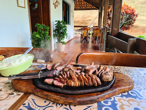 Chegando em Bananal entrei no google e procurei locais para almoçar, logo me encantei por esse restaurante quando vi. Como estávamos de carro, resolvemos ir até lá conferir e que excelente decisão! O local é um pouco distante do centro da cidade, cerca de 15 minutos de carro. Pensa numa paz, numa tranquilidade... Pedimos uma picanha acompanhada de batatas fritas, vinagrete e uma farofinha e que delíciaaaaa! (Salivei só de lembrar). A carne estava saborosamente temperada, molinha, ao ponto. O vinagrete estava saborosamente temperado, as batatas fritas sequinhas e macias e a farofinha bem caseira. Tudo o que eu esperava de um interior tranquilo pra me sentir ainda mais acolhida. Amei! A vontade era pedir o cardápio todo mas não tivemos tempos (nem barriga) rs.. A dona é uma simpatia e nos recebeu super bem! Ah! E tem alguns produtos artesanais que são vendidos lá também. Vale a pena dar uma olhadinha. Pretendo voltar todas as vezes que retornar nessa cidade...