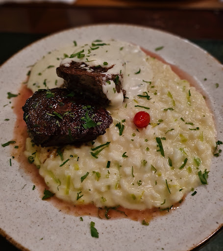Ótima experiência para o dia dos namorados. Ambiente extremamente agradável e receptivo. Funcionários super atenciosos e educados. Destaque para o pastel de filé mignon com pêra e gorgonzola, simplesmente magnífico. Um conjunto de ingredientes que além de acrescentar um toque adocicado, suaviza o gorgonzola e a fritura. Estava tão bom que pedimos duas porções (e também porque os pratos principais estavam demorando cerca de 1 hora devido a quantidade de pessoas). O prato principal que pedi foi um risoto de parmesão com filé ao molho de vinho tinto. O risoto estava um pouco passado do ponto, mas dou o desconto da dificuldade da produção em massa. O arroz mesmo depois de pronto continua cozinhando, e fazer porções de risoto individuais para cada cliente iria demorar uma eternidade. O molho de vinho estava bom, mas me lembrava caldo de feijão. Um pouco inusitado mas não desmerecia o prato. Todavia a carne passou do ponto e estava um pouco seca. Uma pena pois estava bem temperada. De sobremesa pedimos um petit gateau com sorvete de creme. Para os mais enjoados é possível sentir um suavíssimo gosto de ovo ao fundo, mas para mim estava ótimo. Sorvete de creme muito bom também (parece algo que não deveria ser notado mas quem já comeu sorvete de creme ruim sabe do que eu estou falando). Parabéns ao anfitrião que infelizmente não me lembro o nome, que foi muito atencioso desde a reserva até a hora de ir embora. Merece nova visita, pois as únicas coisas complicadas desta vez foram o tempo de espera e o ponto da carne. Quanto ao custo, tendo em vista se tratar de dia dos namorados acho que não cabe comentar....