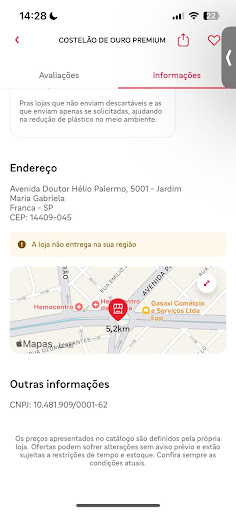 Read moreFiz um pedido pelo iFood para retirada, o perfil do iFood não consta em nenhuma parte que o restaurante é no shopping do calçado, e a localização e o endereço lá estão incorretos, quando fui falar foram mal educados e disseram que a culpa de me perder na cidade não é deles kkkkkk… que oferecem todas as informações erradas ao cliente, temos que ter bola de cristal agora, e até hoje o perfil deles continua do mesmo jeito. Além disso a comida não estava boa, costela dura, fiquei bem decepcionada com a comida e principalmente com o atendimento.