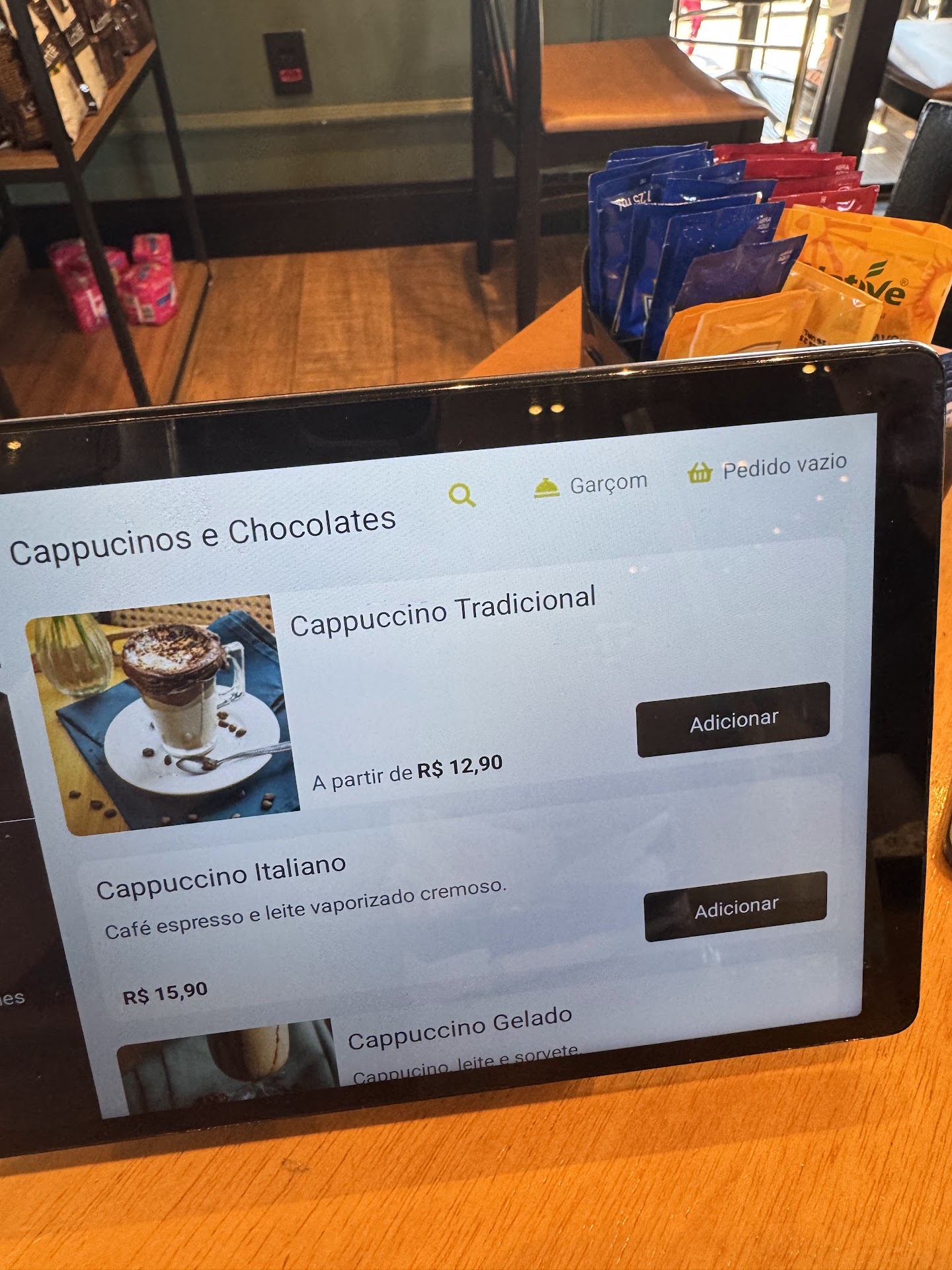 Read moreTive um pequeno problema ao realizar um pedido. Pois pedi um capuccino que na foto tinha chocolate nas bordas. Ao chegar veio apenas o cappuccino e então disse que estava errado, pois a foto estava diferente. Foi quando me disseram que o chocolate era um adicional. Nesse momento devolvi o cappuccino e informei que queria cancelar pois era propaganda enganosa. Apenas no caixa que foi realizado o cancelamento, após explicar novamente a ocorrência e assim foi cancelado. Fica como sugestão de melhoria, pois adicional é quando o cliente quer adicionar algo a mais. Se está na foto, que é por onde nos baseamos, acredito que...