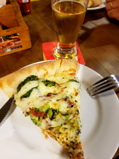 Read moreFoi a primeira vez que fui a esta pizzaria. A pizza em si é deliciosa, massa gostosa, ingredientes de muita qualidade, super bem recheada. O atendimento é muito bom, são muito atenciosos e educados. A única coisa que me fez tirar uma estrelinha no serviço, foi porque a pizza demorou muito pra ficar pronta, mas acredito que foi algo pontual, talvez estavam com mtos pedidos no Ifood ou algo assim. Só gostaria de dar uma sugestão: seria interessante se ao invés de embalagens de papel para servir no local, vocês colocassem em formas se alumínio ou algo assim, pois sairia mais em barato pra vcs não gastar embalagens e tbm seria mais "ecologicamente correto". 😉 Voltarei mais vezes com...