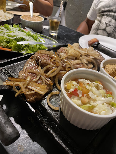 Read moreQuando cheguei, o garçom super alvoroçado tentando enfiar as porções mais caras sendo que eu fui pra almoçar e queria " arroz e feijão" , e quando eu escolhi meu prato ele fez uma cara de ódio. A noite quando voltei para jantar, pedi meia porção de contra filé que custou 60,00 veio uma miséria, estava uma delícia mas veio bem pouco, fiquei em torno de meia hora no local e tinha um DJ e o couvert dele era 7,00 por pessoa, minha conta totalizou em 147,00 por meia porção de contra filé, uma porção de batata, uma caipirinha e uma água tônica. O garçom ainda teve a cara de pau e vir pedir para eu enviar um pix ao invés de cartão por conta da taxa de maquininha eu simplesmente disse: Vc vai tirar meu couvert? Ele disse, não posso, e então eu também não podia enviar pix. É um lugar que não voltarei. Péssima...
