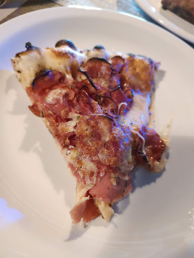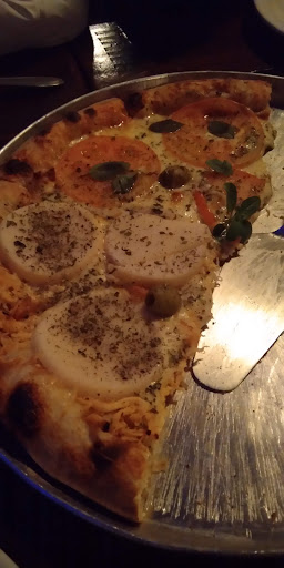 Chegamos por volta das 20h30, e o estacionamento estava cheio, deixamos o carro nas proximidades. Estavam com rodízio de massas e pizza, mas optamos por pizza a la carte. Várias mesas, de quatro lugares estavam reservadas. Haviam poucas e no mezanino. Fizemos nosso pedido, o atendimento foi rápido, tanto pra bebida quanto para a pizza. A pizza possui massa grossa, é saborosa. Rolava uma música ambiente, boa, e em uma tv, pendurada na parede, passava um filme do homem aranha, claro, sem som. Não há uma área para crianças, mas na entrada do estabelecimento, que fica na lateral do restaurante há uma grande área gramada. Eles trabalham com reservas de mesa, e só restaram mesas para duas pessoas, como éramos só duas pessoas, conseguimos uma mesa. Portanto, melhor telefonar para o local e reservar, se estiverem em três ou...