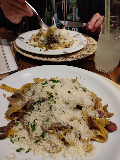 Depois foi a vez da comida, pedi um risoto amatriciana e meu marido um nhoque ao sugo. Pratos demorados, o nhoque era insosso, completamente sem graça e com excesso de manjericão. Prato custou 54,00 O risoto era bom, tinha sabor, mas o molho de tomate era muito ácido, também tinha excesso de manjericão. Prato custou 78,00 Não pediria novamente.