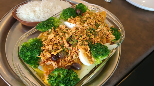 O prato é tão indefinível que o bacalhau veio em lombos altos e bem grandes (1/2 prato), um tempero suave, nada agressivo. Apenas ressaltou o sabor do Bacalhau. Foi servido com brócolis, ovos, batatas e muito, muito azeite, num carrinho lindo.