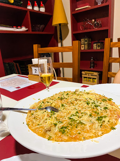 O cardápio é um verdadeiro convite ao prazer gastronômico. Os risotos são preparados com maestria, sempre cremosos e equilibrados, enquanto os pratos de massa trazem aquele toque artesanal que faz toda a diferença. Para os apreciadores de um bom vinho, a casa também conta com uma bela seleção, incluindo rótulos da região, que harmonizam perfeitamente com os pratos servidos.