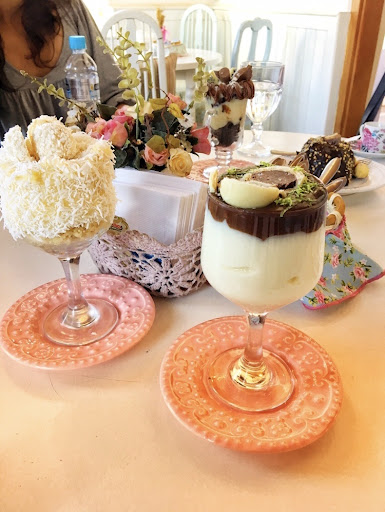 Read moreUm ambiente lindo, agradável e muito bem frequentado. Doces maravilhosos e um preço justo pela qualidade dos produtos. Gosto muito de ir comer um docinho ai, porém ontem eu e meu namorado fomos até o local e ele pediu um caputino e veio simplesmente um café com leite sem gosto de caputino nenhum, e eu pedi um chocolate quente gourmet e me serviram uma taça linda e enfeitada como sempre, mas o chocolate quente, estava morno e cheio de bolinhas de maisena que não foram bem dissolvidas. Não deixarei de frequentar o local, pois acredito que isso tenha sido um caso isolado e não irá se repetir, mas como cliente devo fazer os merecidos elogios e avisá-los os casos que pontuam...