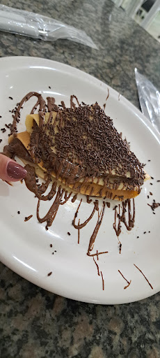 Crepe de Brigadeiro: Para a sobremesa, optamos pelo crepe de brigadeiro, que foi uma escolha acertada. O recheio de brigadeiro estava no ponto certo, com uma textura cremosa e um sabor intenso de chocolate. A massa do crepe, fina e bem preparada, proporcionou a base perfeita para essa delícia doce.