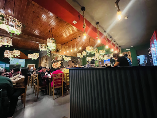 Ambiente super aconchegante e familiar, com uma decoração charmosa e cheia de detalhes que fazem diferença — as luminárias com folhagens são um destaque à parte! Ideal para quem quer curtir uma noite agradável com a família ou amigos.
