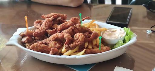 Read moreAmbiente super agradável, vista bonita com muito verde, música ambiente. Estão seguindo os protocolos de segurança do Covid-19. Fomos em uma quarta-feira, no almoço, estava bem tranquilo, fomos bem atendidos. Pedidos a tão famosa Tilápia com mandioca (substituímos por batata) e acompanha também torresmo (pedi para deixar bem tostado, por ser barriga veio meio molinha, pois gostamos bem crocante) a cerveja estava bem gelada, pedi suco de laranja com cenoura e meu filho abacaxi com hortelã, ambos bem servidos. Esse prato serviu muito bem nós três ( praticamente 3 adultos). A foto não está tão boa, a porção é bem...