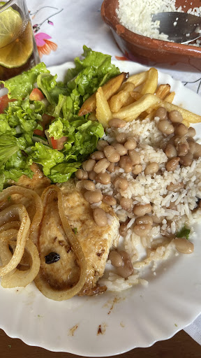 A comida cara, sem higiene, a mesa dentro da cozinha preta e com crosta. Copo embaçado e gorduroso. Em matéria do prato alacarte veio só duas colheres de sopa de batata frita. Uma concha de feijão. A salada duas rodelas de alface. ESTOU FALANDO SÉRIO. Ainda o esposo da dona com palito de dente na boca pega no palito,terrível.