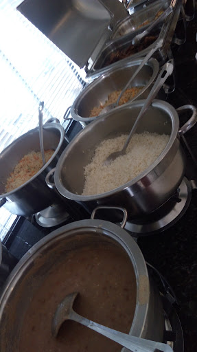 No coração da cidade, bem localizada numa esquina. Buffet: opções não em muita qualidade, porém comida de excelente qualidade, tudo servido com ótima apresentação. Duas opções de mesa redonda e retangular com cadeiras confortáveis. Comida paga por quilo ou à vontade. Churrasco de boa qualidade, cortado na hora. Sobremesa refinada e bem servida. O banheiro é acima do padrão para o restaurante, limpo, sabão tipo espuma, toalha de papel de primeira, fio dental e enxágue bucal cortesia. Atendimento muito educado, fomos recebidos e ao entrar nos foi explicado o funcionamento do restaurante. Pessoal uniformizado e muito gentil e eficiente. Preço justo e durante a semana preço promocional. Salão amplo e bem arejado. Luz bem confortável e agradável. Som ambiente e TV com imagens...
